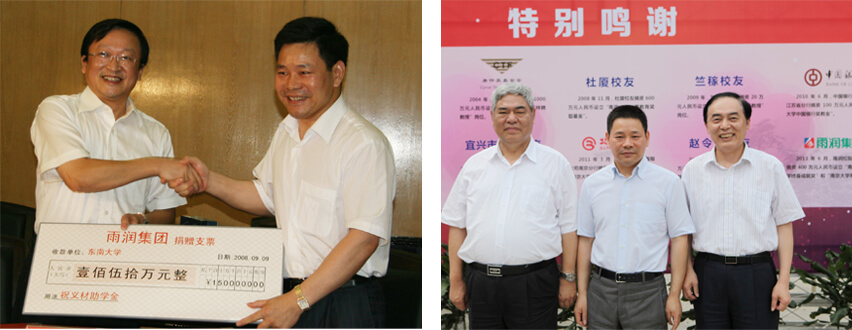 同樣,雨潤在東南大學(xué)設立的“祝義財助學(xué)金”,也已經(jīng)完成首期五年的捐贈計劃:五年內共捐資150萬(wàn)元,幫助500名學(xué)子順利完成學(xué)業(yè)。雨潤還在安徽大學(xué)等其他很多知名高校同樣設立了“祝義財助學(xué)金”。