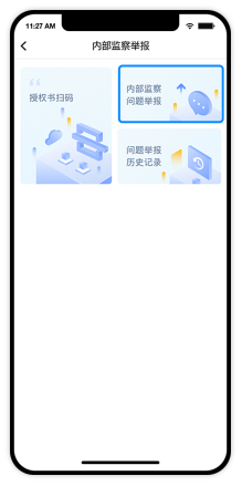 進(jìn)入小程序,點(diǎn)擊首頁(yè)內部監察問(wèn)題反饋,進(jìn)入問(wèn)題反饋?lái)?yè)面